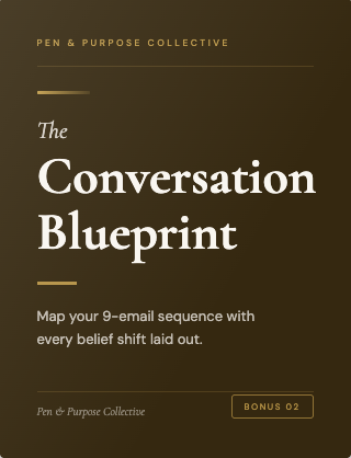 A one-page master plan that lays out your full 9-email sequence — each email’s role, belief shift, and CTA — so you can see your invisible sales conversation as a complete, teachable system.